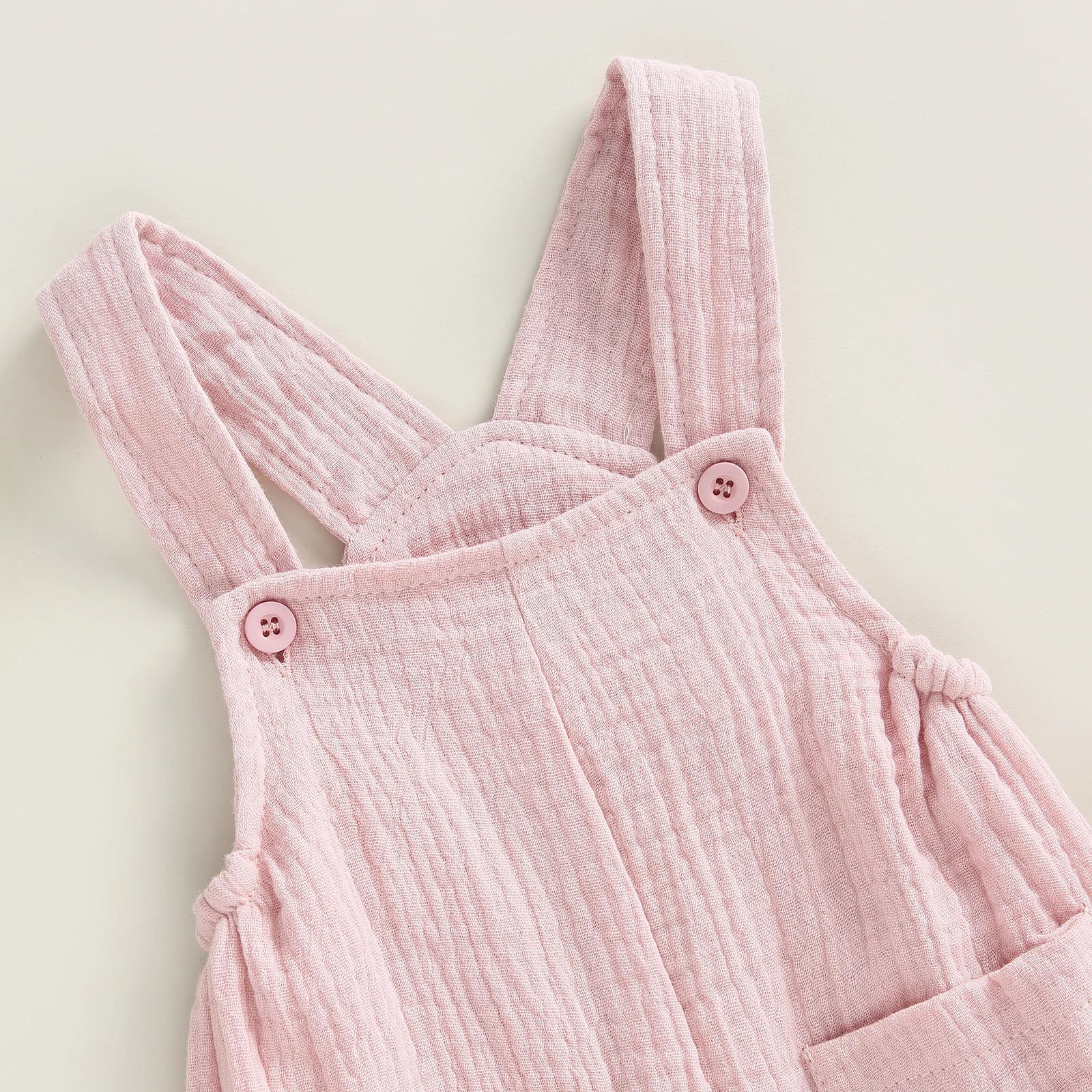 Baby Summer Suspenders Jumpsuit Solid Color Sleeveless Romper with Pockets for Newborn Infant Boy Girls